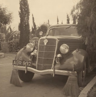 | "Auto with brooms to sweep away tacks thrown by strikers." (1936) |